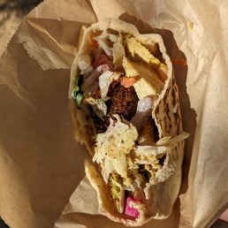 First thing to Know is I am absolutely obsessed with Falafel. I am of Middle Eastern descent, and we take our Falafel seriously. I first had a Falafel Sandwich from the Yalla Truck at an event in Chinatown called Summer Nights. Awesome free event by the way. I have to admit it was AMAZING and sooo Good. They put this green sauce on it which has a strong Spicy Kick to it and OMG it was Freaking AMAZING !! The Falafel was SPOT on and to be REAL it was probably the best Falafel I had so far in the VALLEY. It's made like they do back home in the Old Country. If you love spicy you need to ask for the green sauce they put on it. It has such a kick to it and makes the Falafel even better. I love spicy food. Also, the guys working the truck were pretty freaking cool. Great service...I can't wait to try it again. Ask for the green sauce if you like spicy. So Great.